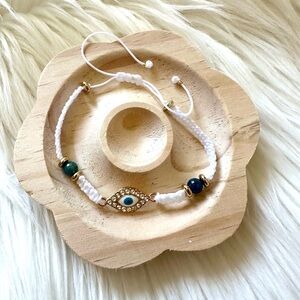 Handmade Evil Eye White Adjustable String Bracelet With Natural Blue Apatite