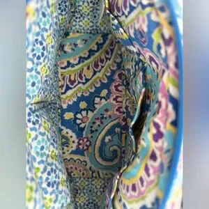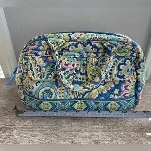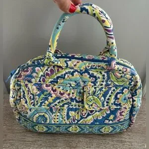 Vera Bradley Bowler Bag Blue Green Pink Paisley Double Handles Pockets Zip Close