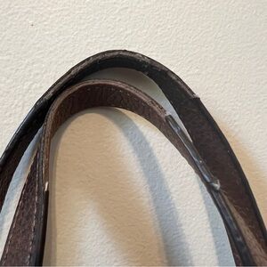 Coach Kelsey satchel in the small size, crafted from brown pebbled leather with gold hardware. This versatile handbag is well-loved with plenty of life left. Please note: the crossbody strap is missing, and the handles show moderate wear (see photos). Still a chic and functional everyday bag with top zip closure, roomy interior, and classic Coach style.