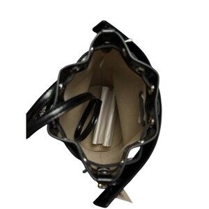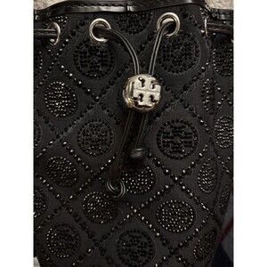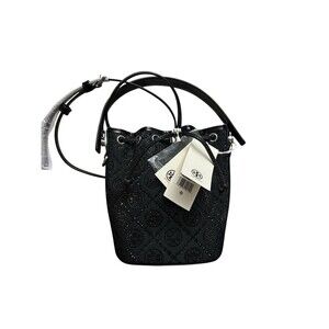 Tory Burch Mini T-Monogram Hot Fix Jacquard Top Handle Bucket In Black New