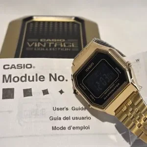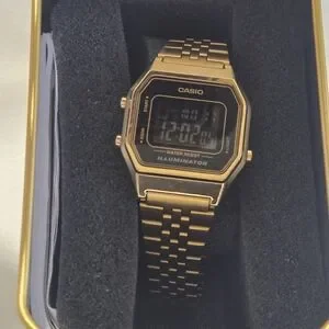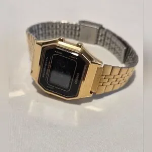 Casio digital watch in gold with a classic design. Casio Vintage Collection Comes in a matching gold case.