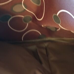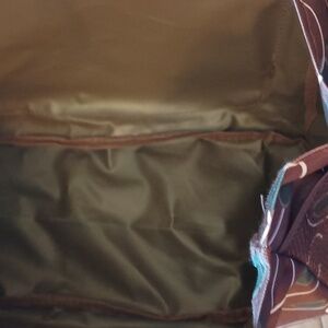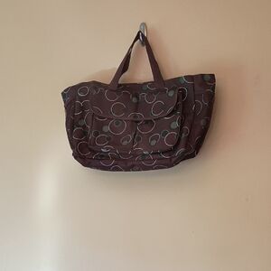 This burgundy, gray and white tote bag is clean inside and out. Double Velcro pocket on the front. Mesh pouches on the sides Approx measurements:17"x11.5"x6.5" Drop 7".