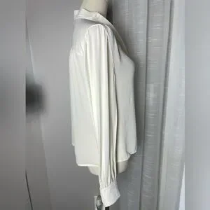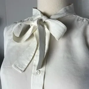 Brooks Brothers Neck Tie Cream White 100% Silk Blouse Size 8