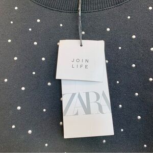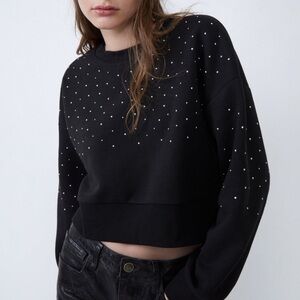 ZARA Black Studded Embellished Cropped Sweatshirt