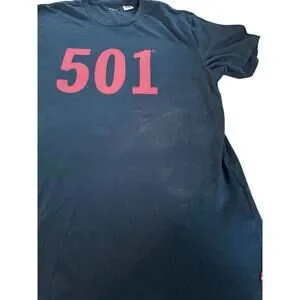 LEVIS 501 T-Shirt Blue With Red Letters Size Medium LEVIS Graphic Shirt