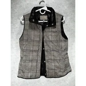 Banana Republic Down Quilted Puffer Vest Size Small Black & White Plaid