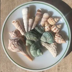 Elegant seashell set featuring cream and brown tones. Ideal for decor or crafts. I cannot remember where these were picked up but they are real and amazing to look at. 16 pieces in total. Sold as is see photos