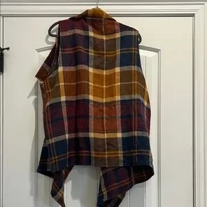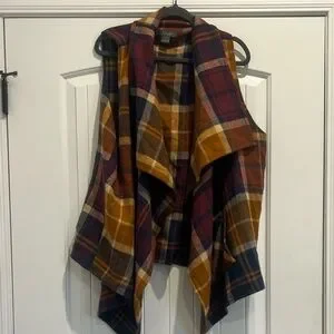 Chic plaid vest with a blend of warm tones. Perfect for layering. So soft and cozy! Feels like a thin fleece