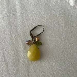 Elegant yellow teardrop earrings with green accents, perfect for adding a pop of color to any outfit.