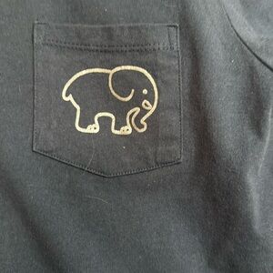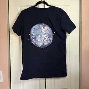 Navy Ivory Ella blue tee with elephant design on pocket. Planet design on back with signature elephant.