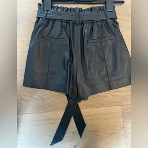Sleek faux leather shorts with zipper detail. Elastic waistband for comfort.