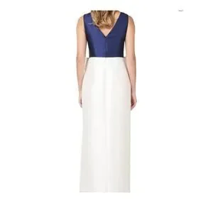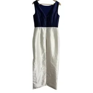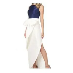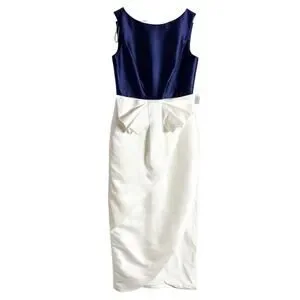 Kay Unger Hailey Colorblock Sleeveless 3D Bow Side Slit Navy Ivory Dress Size 10