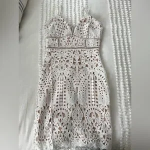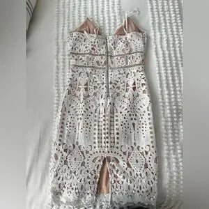 Chic lace design with intricate patterns. Perfect for elegant occasions. Sleeveless and stylish.