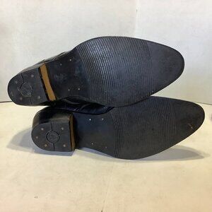 Measures approx. 16 1/2 inches tall. Peeling inside, but outside is good condition. NO SIZE. Bottom soles measures approx. 11 3/4 inches outside and approx. 11 inches inside. See pictures for condition. Comes from a smoke free home.