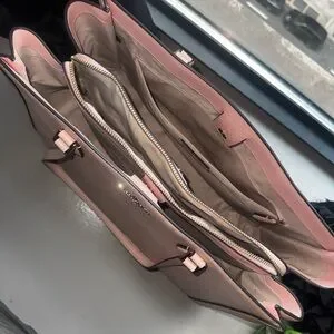 Chic Kate Spade tote in blush pink. Features elegant straps and a spacious interior.