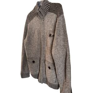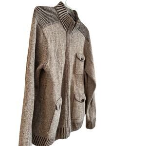 BLUE PRONTO UOMO 100% Wool Sweater Mens XL full zip Sweater Cardigan Brown