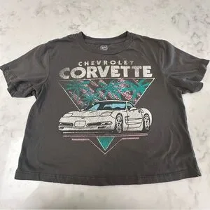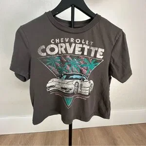 Chevrolet Corvette Graphic Crop Tee - Gray. Size XS