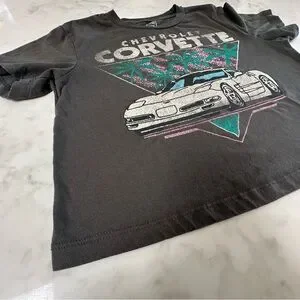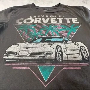 Trendy and stylish Chevrolet Corvette crop tee featuring a vibrant car graphic. Perfect for car enthusiasts.