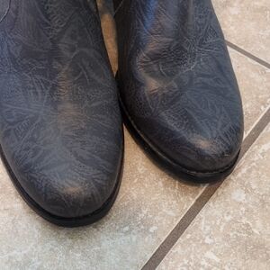 Chic black heeled boots with a textured finish. Stylish and versatile for any wardrobe.