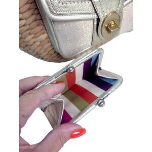 Vintage COACH Legacy Multicolor Straw Basket and gold Turnlock Wallet Set