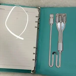 This device originally had wireless charging, but now it doesn't work properly. It also has a small light for writing, which I tested and is working. However, the charging only goes up to 64%. It comes with a stylus. There are also some flaws on the device, which have been marked out.