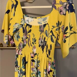 Flattering print with elastic back panel and square neck that flows so beautifully.