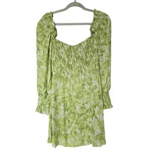 Faithfull The Brand Mini Dress Women's Size 6 Green White Tie Dye Long Sleeve