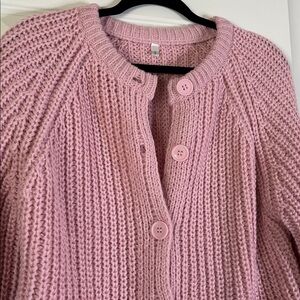 Pink Chunky knit button front cardigan sweater