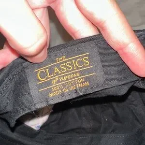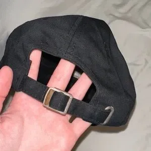 Stylish black cap featuring purple embroidery. Perfect for casual wear.