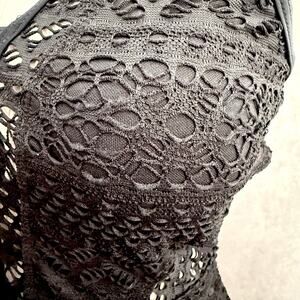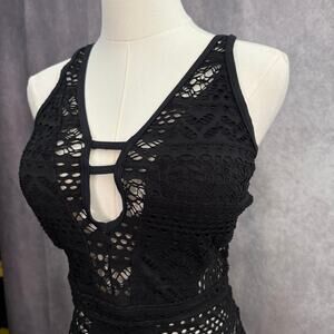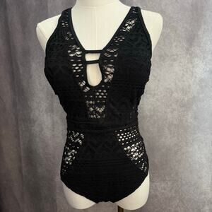 Black XL Cutout Crochet One-Piece Swimsuit with Tie Back and lace look NWT