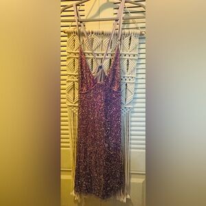 FREE PEOPLE Intimately Gold Rush Sequined Mini Dress in Purple Sz Small