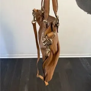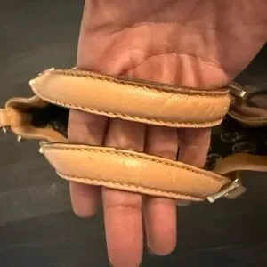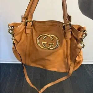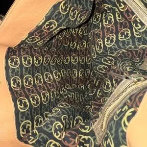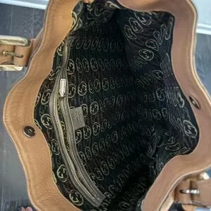 Elevate your style with this Gucci tan leather shoulder bag. Featuring a luxurious design and iconic branding, it's perfect for any occasion. Was painted over callout