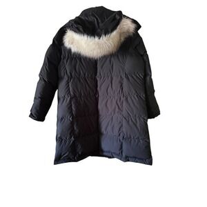 Embrace the chill with a sophisticated edge in this luxurious down-filled puffer coat. A cozy embrace against the cold, this coat offers exceptional warmth and comfort with its premium down insulation. The design features a flattering silhouette, providing a streamlined yet comfortable fit. Details such as the faux fur-trimmed hood add a touch of elegance and extra protection from the elements. The long length extends coverage and warmth, making it perfect for brisk morning commutes, weekend strolls through snowy landscapes, or elegant evenings in the city.