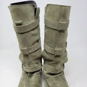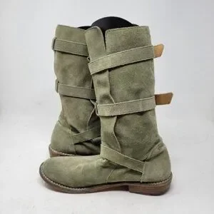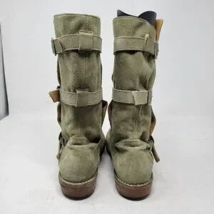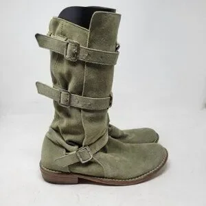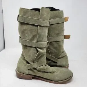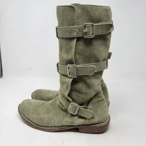 Fiorentini + Baker | Eternity Suede Leather Tall Moto Boots Olive Green