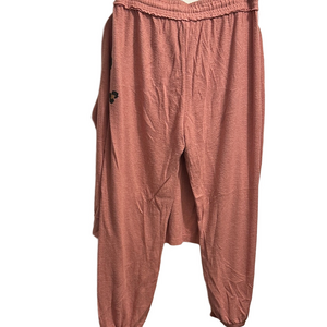 Relax in style with this coral pajama set featuring a chic leopard print. Ideal for a cozy night's sleep. Sweats are L top is oversized small. See measurements. Fabric is made to be a brushed look. 68% polyester 26% rayon 4% spandex.