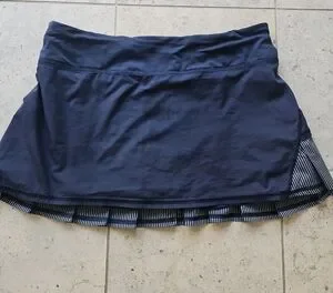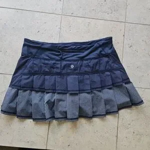 LULULEMON Tennis Pickleball Skirt Pace Setter - Navy Blue, Gray Stripes, Ruffles.