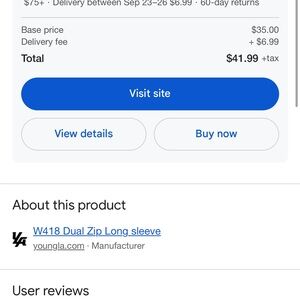 Stylish ribbed jacket. Full zip closure, 2 zippers. Long sleeves. Comfortable tight fit, stretchy but good quality. I paid 42 with shipping.