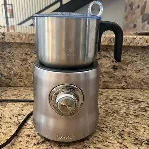 Create rich froth with Breville's sleek frother. Ideal for lattes and cappuccinos. I even used it in the past for making things like hot chocolate- dumping powder in while the milk frothed and it made them perfectly with no clumps! Heats and froths liquid to the perfect temperature.