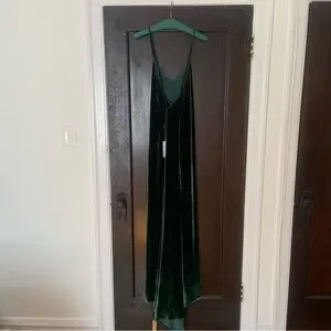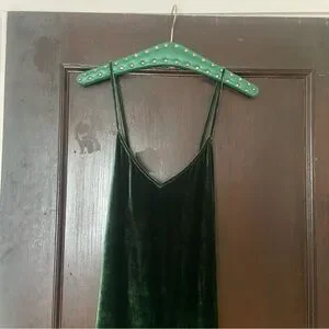 Luxurious dark green velvet dress with a sleek design. Perfect for special occasions.
