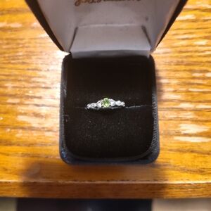 Elegant Silver and Green Gemstone Ring Size 8