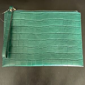 Michael Kors Jet Set Travel Croc Embossed Leather XL Zip Clutch LikeNew Emerald