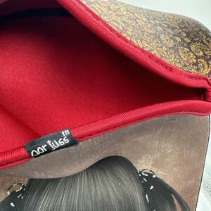 iPad Soft Case 7.5" wide x 10" tall Fold-over flap Animae art portrait on front Animae girl on a swing on back Maroon trim, a bit of missing stitching, see photos. Smoke-free and pet-free home. Photos are considered a part of the description. Questions? Please ask before purchasing. Cheers, BJ