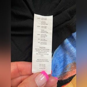 The coloring is beautiful and looks exactly like a watercolor painting. The dress is thin (has lining), has some stretch, and is very comfortable during the Summer months. I have worn white and dark denim jackets with it for an edgier look.