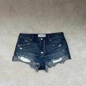 Abercrombie & Fitch Distressed Button-Fly Mid-Rise Denim Short Dark Wash Blue Jean