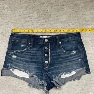 Abercrombie & Fitch Distressed Button-Fly Denim Short Blue Jean Festival Size 6