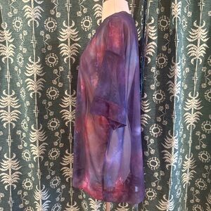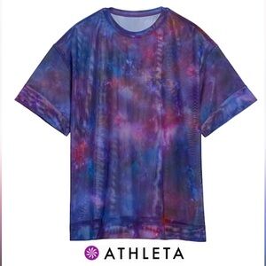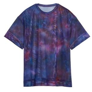 ATHLETA Mesh Top Oversized Layering Shirt Medium Purple Pink Tie-Dye Tee