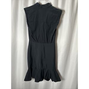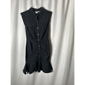 Black poplin (97% Cotton, 3% Elastane). A-line. Cap sleeves. Collar. Front button closure. 35.5" from shoulder to hemline. Imported.