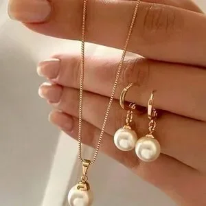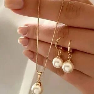 Elegant Gold and Pearl Necklace Set