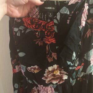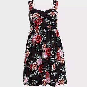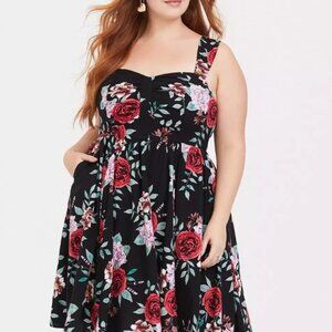 Torrid Mini Challis Skater Dress Black Floral Roses Size 2