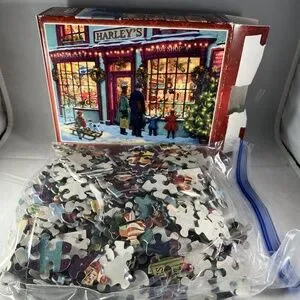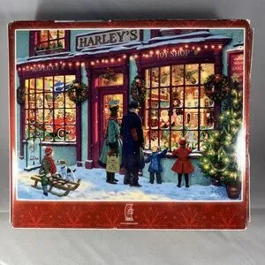 Immerse yourself in the festive charm of the Ceaco 'Spirit of Christmas' Jigsaw Puzzle. This engaging 550-piece puzzle features a vibrant, multi-color snowy street scene with 'Harley's Toy Shop', offering a delightful challenge for the holiday season. Proudly made in the USA, it's perfect for creating cherished memories with family and friends.